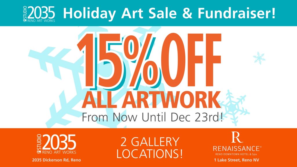 Studio2035 operates under Reno Art Works a 501c non-profit organization devoted to providing affordable professional workspace, gallery, and classroom space to visual artists of all mediums and styles. Our studio is close to Midtown Reno ,just outside on what is becoming Reno’s emerging art culture district, Dickerson Road. About Studio2035